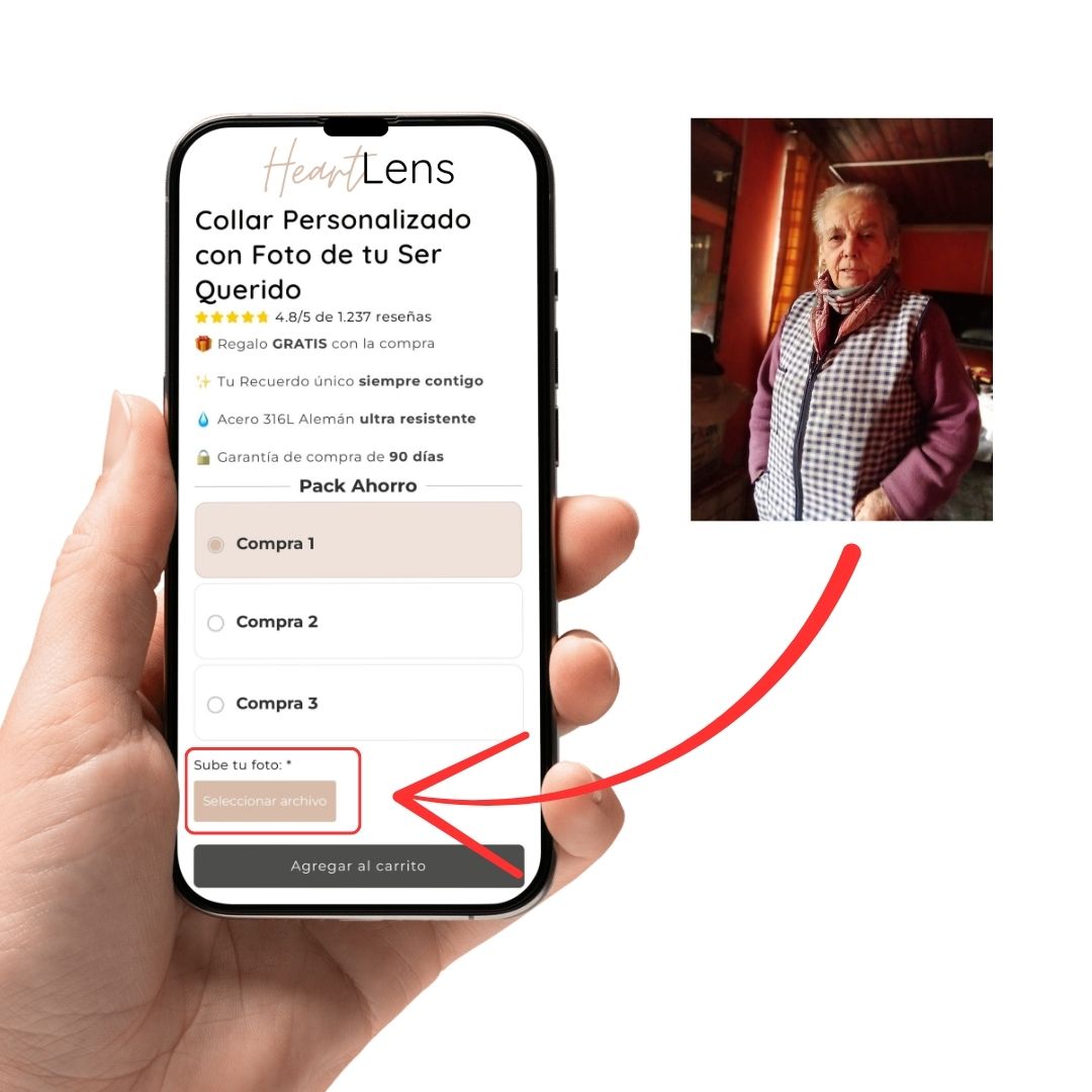 Puedes elegir la imagen que más signifique para ti: un familiar, tu pareja, tu hijo, tu mascota o un momento especial. Lo importante es que sea clara y nítida. Aceptamos archivos en formato JPG, JPEG o PNG, y el diseño está pensado para que combine con cualquier atuendo.